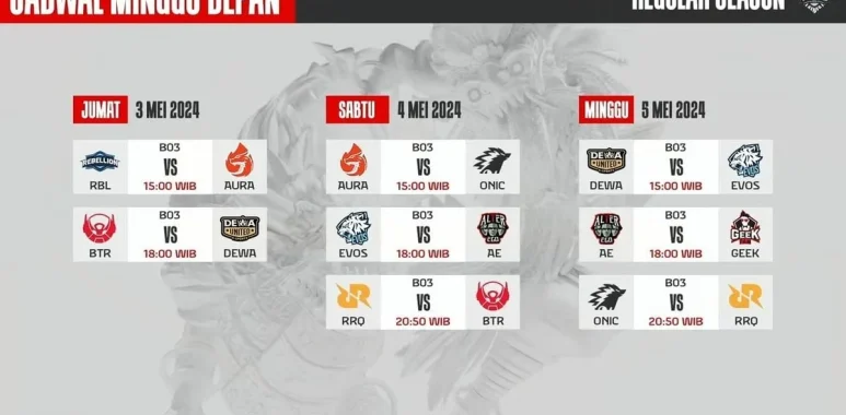 Rival klasik seperti RRQ vs ONIC, EVOS vs Bigetron, atau showdown antara tim papan atas di pekan akhir.